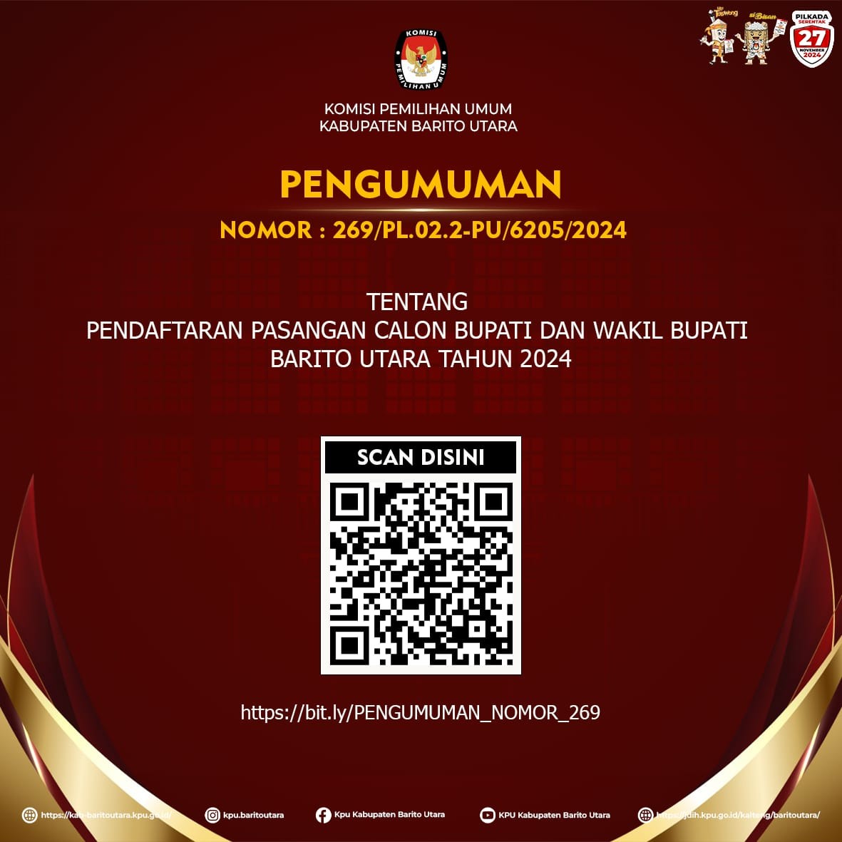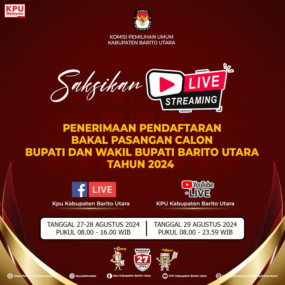 SAKSIKAN LIVE STREAMING PENDAFTARAN BAKAL PASANGAN CALON BUPATI DAN WAKIL BUPATI BARITO UTARA TAHUN 2024