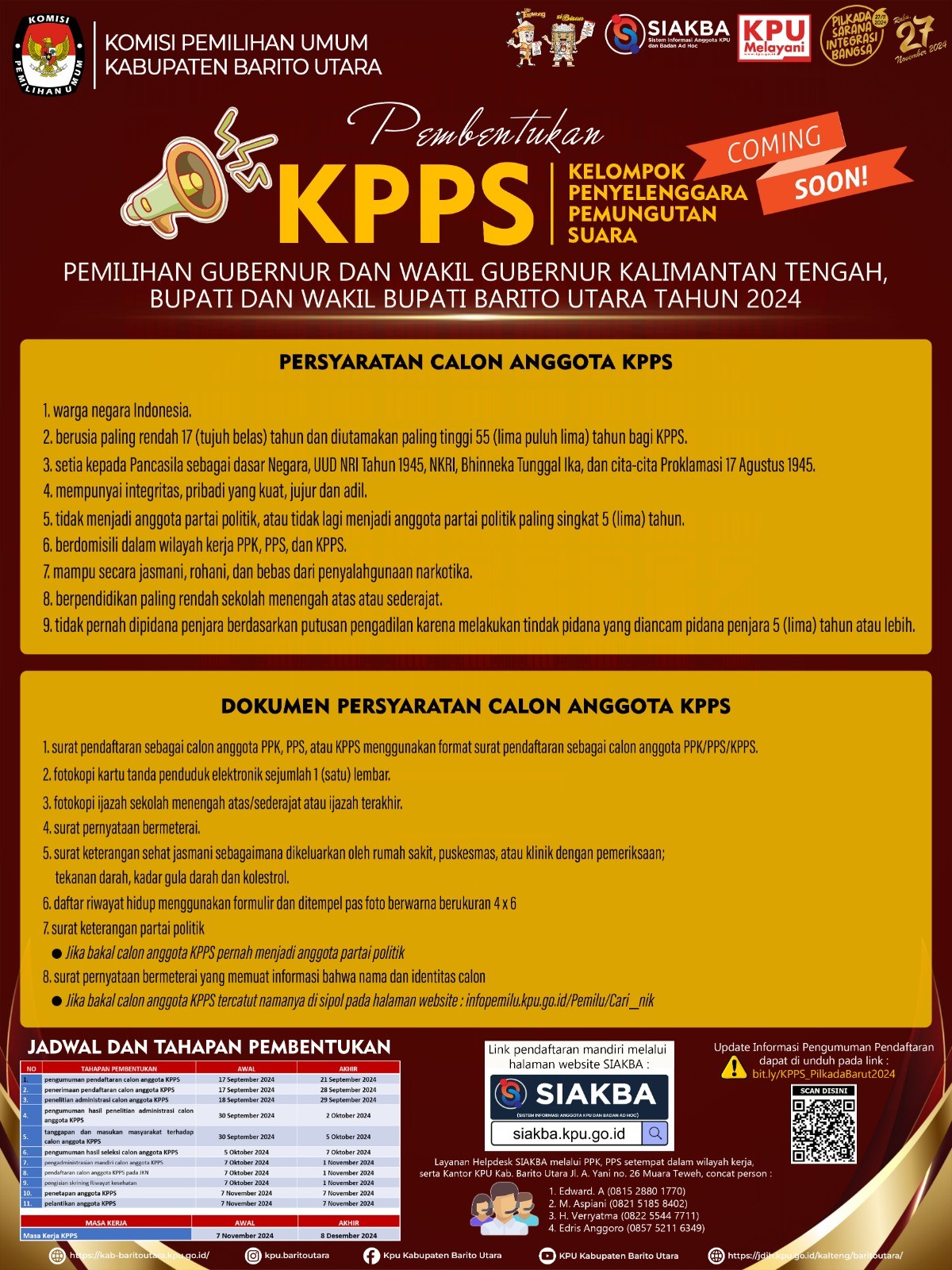 Pembentukan KPPS untuk Pemilihan Gubernur dan Wakil Gubernur, Bupati dan Wakil Bupati pada Kabupaten Barito Utara Tahun 2024